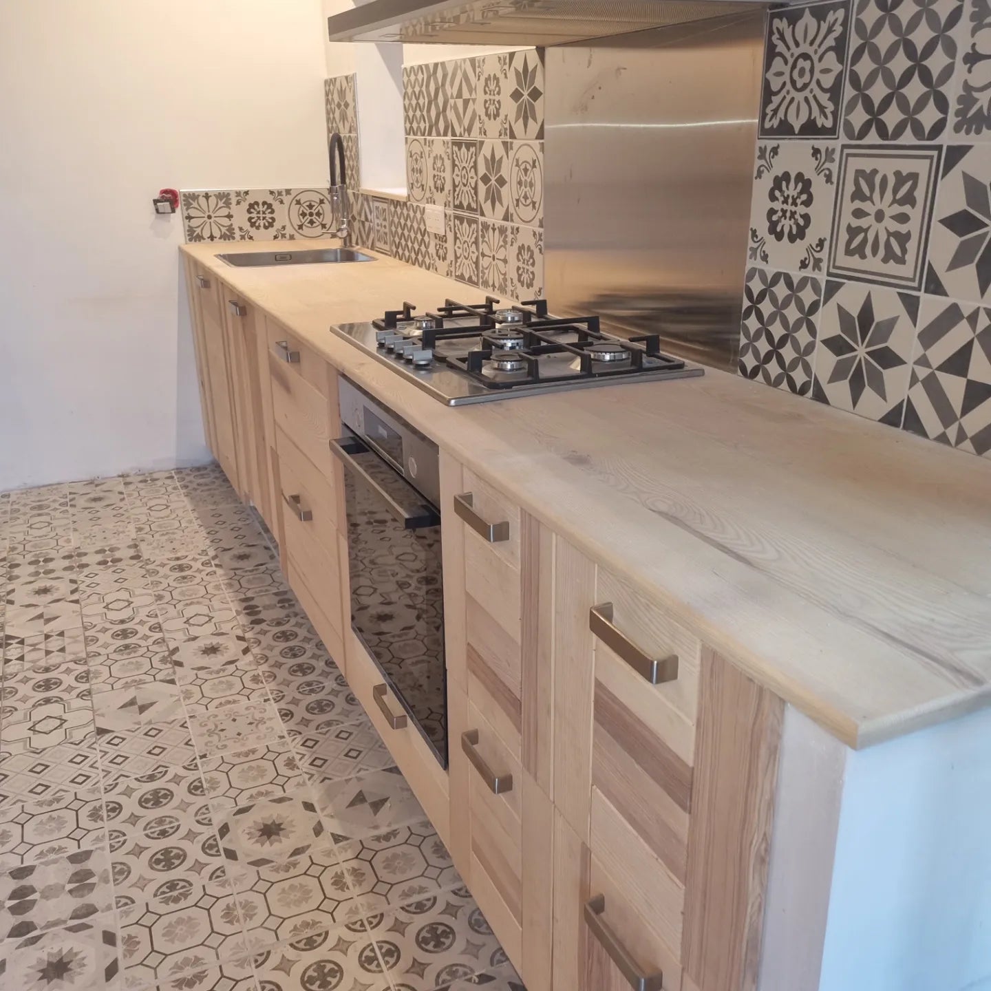 nous fabriquons des façades de cuisine modernes en bois massif. Chêne, frêne ou hêtre, nos façades peuvent être adaptées sur une cuisine neuve ou pour redonner vie à une cuisine existante que vous souhaitez rénover.