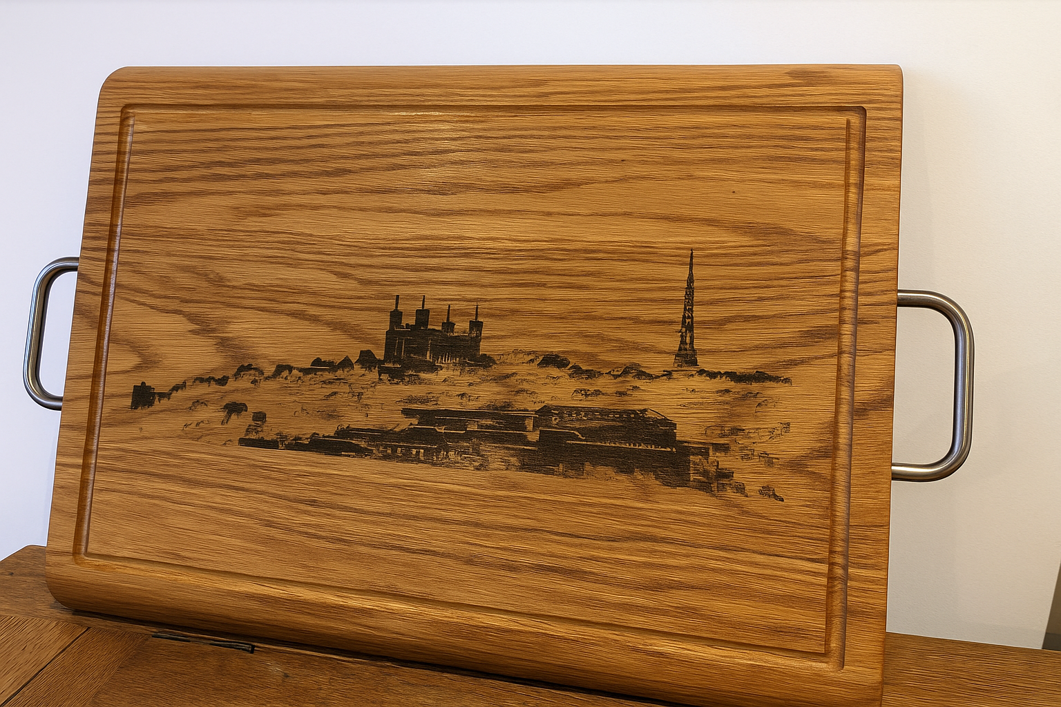 Plateau chêne personnalisable avec poignées